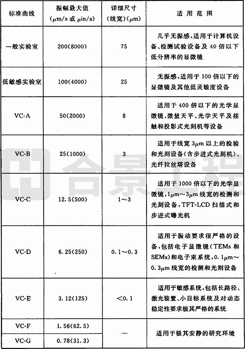 圖A.0.1 精密設(shè)備、儀器容許振動(dòng)通用標(biāo)準(zhǔn)曲線
